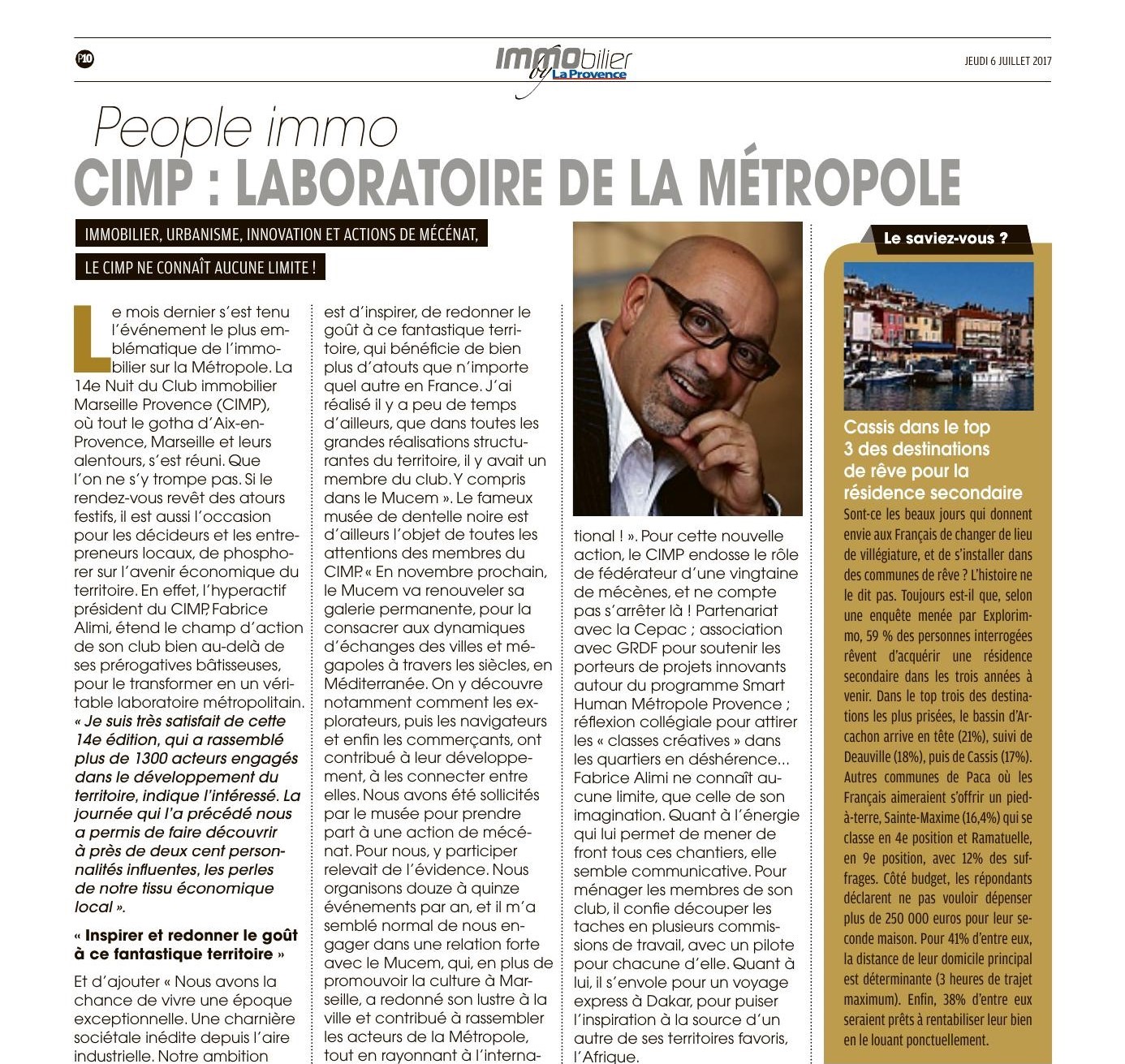 CIMP : LABORATOIRE DE LA MÉTROPOLE (IMMOBILIER by LA PROVENCE DU 6 JUILLET 2017)