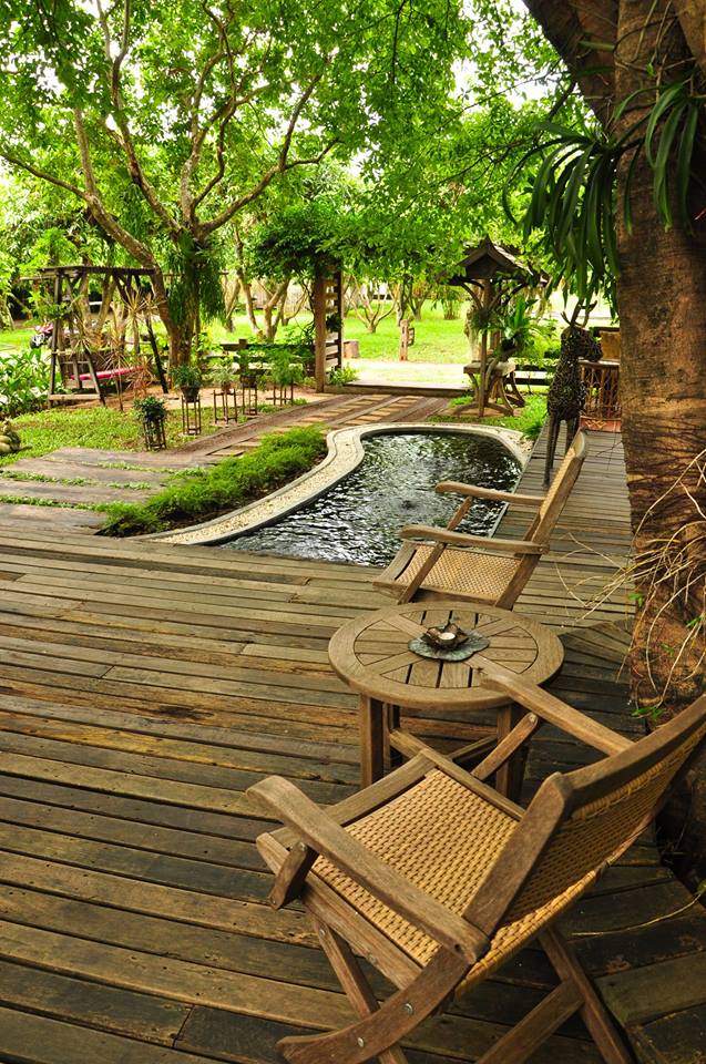 Osez le tour du monde en choisissant une ambiance qui vous attire : asiatique, voire japonisante, tropicale ou méditerranéenne, africaine, ou sud américaine. Elaborez une toile de fond avec des murs peints ou bien mi-ouvragées. Optez ensuite pour une végétation adaptée et caractéristique, cependant, rustique pour notre climat. Toutefois bien des plantes au look exotique s’avèrent suffisamment robustes pour faire de l’effet de partout : palmier, cactus, Agave, Fatsia, japonica et bien d’autres encore… Pour un effet luxuriant, rien ne remplace les lianes habillant de simples structures verticales. Il vous faudra alors les maîtriser au fur et à mesure de leur vagabondage. N’hésitez pas à installer un système automatique d’arrosage avec programmateur pour pouvoir délaisser quelques temps votre éden sans aucun remord.