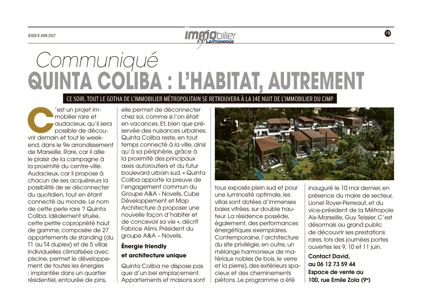 > QUINTA COLIBA : L'HABITAT AUTREMENT (IMMOBILIER by LA PROVENCE DU 8 JUIN 2017)